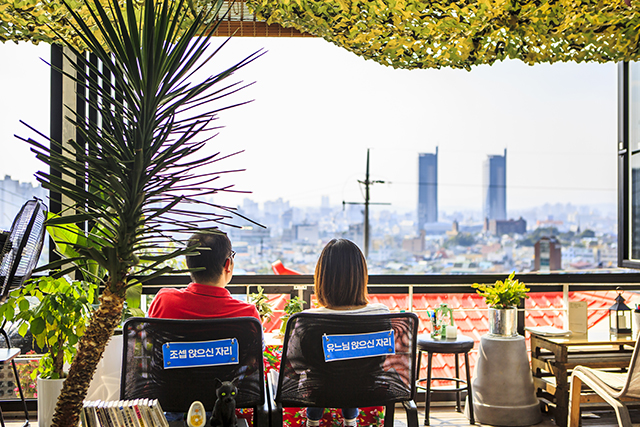 빈티지한 카페와 소품 숍은 대동하늘공원을 여행하는 또 다른 재미다. 지역 작가들이 만든 책과 소품이 눈길을 끄는 ‘머물다가게’는 대전 토박이 가이드가 동행하는 도보 프로그램도 운영한다. 예능 프로그램 〈유 퀴즈 온 더 블럭〉에 소개된 ‘대동단결’은 전망 좋은 카페로 유명하다. 촬영 당시 유재석과 조세호가 앉은 자리는 일몰을 감상하는 명당으로 꼽힌다.