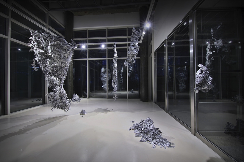 그는 4면이 유리벽으로 마감된 천장 높이 5.25m의 전시 공간 내부에 우주나 동굴에 있을 법한 생태계를 조성했다. 이 생태계는 동굴의 천장서 물이 떨어지며 자라는 종유석과 전자현미경으로 확대한 먼지, 우주를 떠다니는 작은 유성체를 연상시키는 8개의 크고 작은 입체 덩어리로 이뤄졌다.