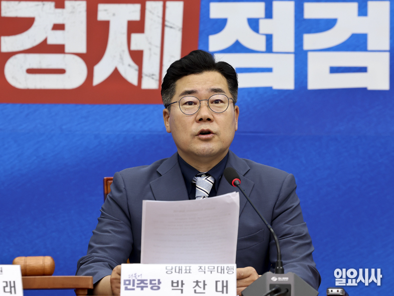더불어민주당 박찬대 당대표 직무대행 겸 원내대표가 7일 오전 서울 여의도 국회에서 열린 비상경제 점검회의 및 최고위원회의에서 모두발언을 하고 있다.