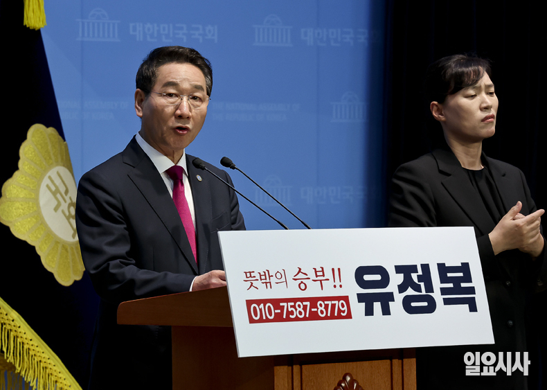 유정복 인천광역시장이 9일 오후 서울 여의도 국회 소통관에서 열린 제21대 대통령선거 출마선언 기자회견에서 발언하고 있다.
