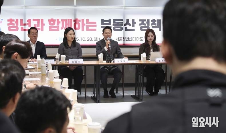 국민의힘 장동혁 대표가 28일 오후 서울 마포구 서울청년센터 마포에서 열린 ‘청년과 함께하는 부동산 정책 간담회’에서 발언하고 있다.