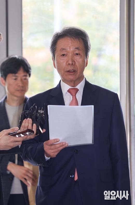 김용원 국가인권위원회 상임위원이 31일 오후 서울 서초구 채상병 특검(순직 해병 수사 방해 및 사건 은폐 의혹을 위한 특별검사) 사무실로 출석하면서 입장을 발표하고 있다.