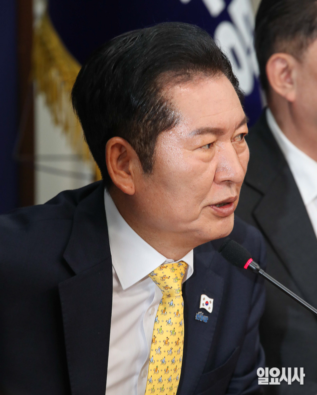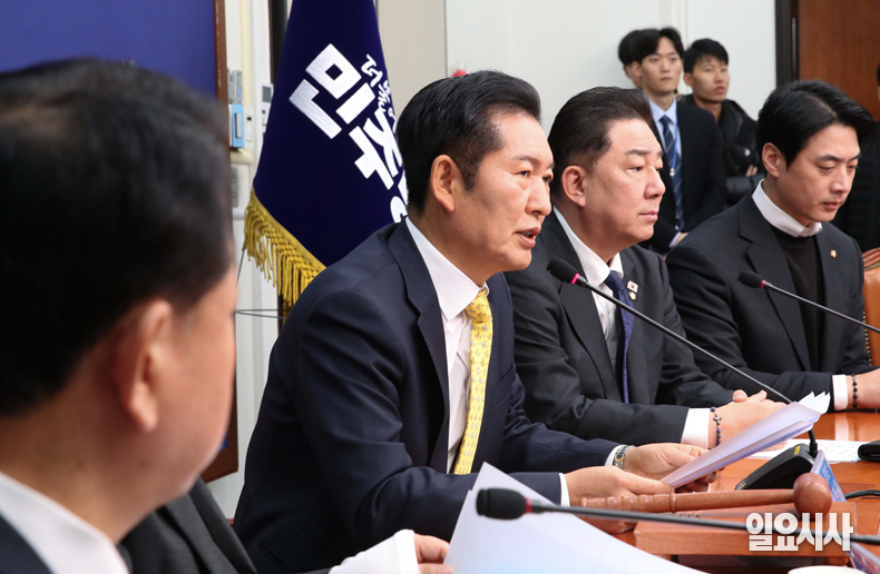 더불어민주당 정청래 대표가 3일 오전 서울 여의도 국회에서 열린 최고위원회의에서 모두발언을 하고 있다.