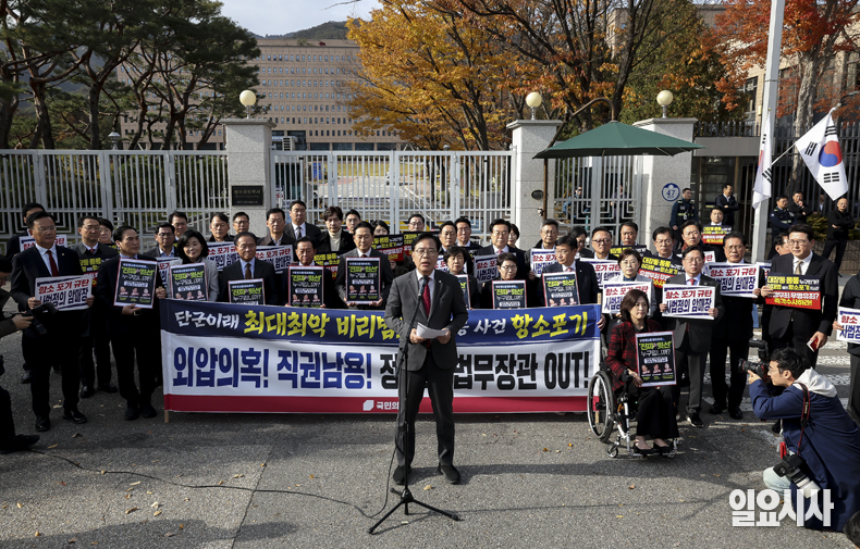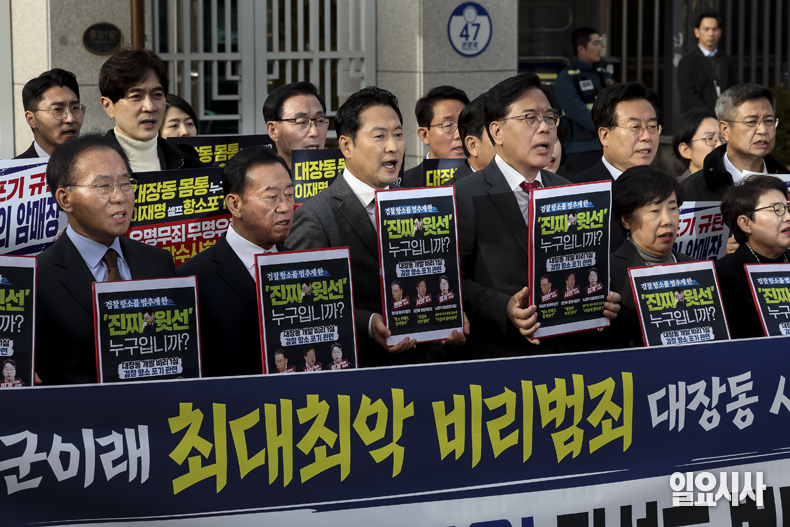 이날 국민의힘은 검찰의 대장동 사건 항소 포기와 관련해 정성호 법무부 장관 등을 규탄했다.