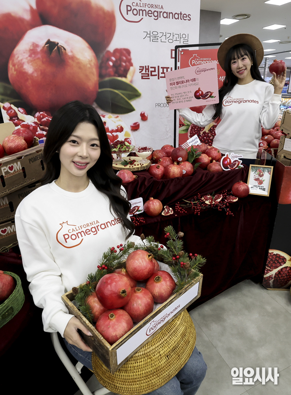 18일 서울 중구 롯데마트 제타플렉스 서울역점에서 홍보 모델들이 미국 캘리포니아 석류를 선보이고 있다.