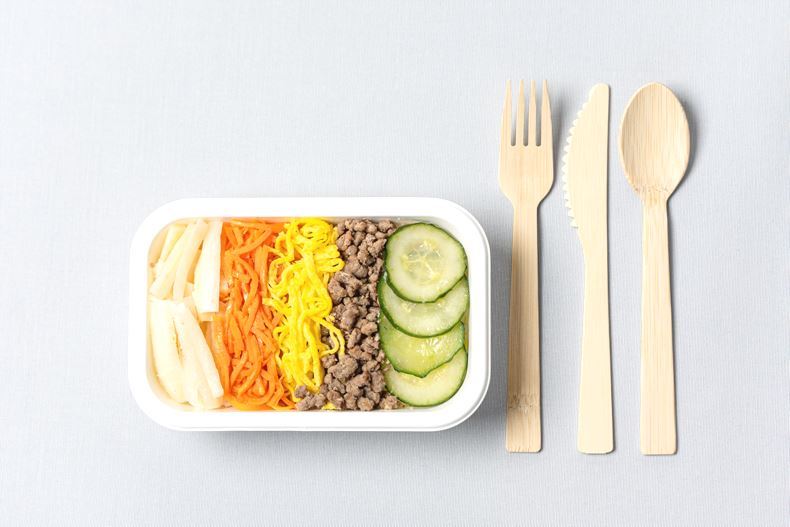 신규 기내식 용기는 밀짚, 사탕수수, 대나무 등 다양한 식물성 원료로 만든 비목재 펄프 소재로 제작됐다. 이 소재는 나무를 벌목하지 않고도 생산 가능하다는 점에서 이상적인 친환경 소재로 꼽힌다. 또 고온에 장시간 노출된 환경에서도 변형이 적고 견고한 내구성을 자랑해 사용 편의성까지 높였다.