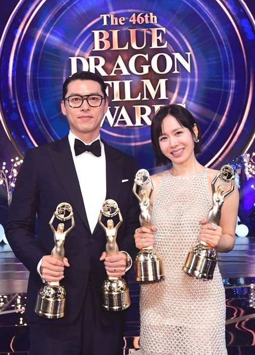 [일요시사 취재1팀] 서진 기자 = “가장 가까운 사람과 이런 영광을 함께 나눌 수 있어 너무 기쁘다.” 지난 19일 서울 여의도 KBS홀에서 열린 제46회 청룡영화상 시상식에서 현빈·손예진 부부가 청룡영화상 역사상 처음으로 남녀주연상 공동 수상의 영예를 안았다.