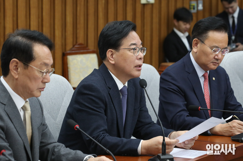 국민의힘 송언석 원내대표가 25일 오전 서울 여의도 국회에서 열린 원내대책회의에서 발언하고 있다.