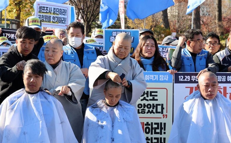 [일요시사 취재2팀] 김준혁 기자 = 12·29 제주항공 여객기 참사 관련 항공철도사고조사위원회(항철위)의 공청회를 앞둔 1일, 유가족들이 대통령실 앞에서 삭발과 밤샘 농성에 돌입했다.