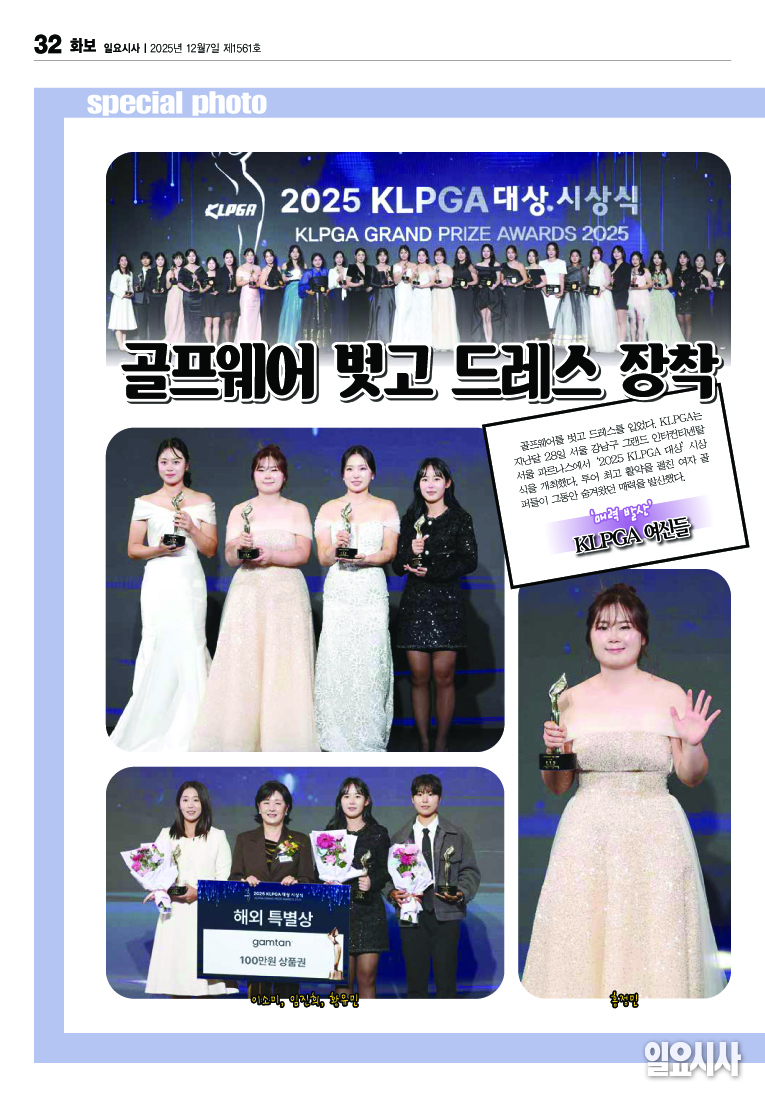 골프웨어를 벗고 드레스를 입었다. KLPGA는 지난달 28일 서울 강남구 그랜드 인터컨티넨탈 서울 파르나스에서 ‘2025 KLPGA 대상’ 시상식을 개최했다. 투어 최고 활약을 펼친 여자 골퍼들이 그동안 숨겨왔던 매력을 발산했다.