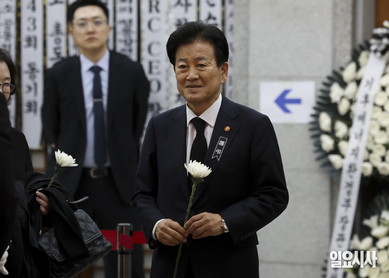 정동영 통일부 장관이 29일 서울 종로구 서울대학교병원 장례식장에 마련된 고 이해찬 전 국무총리의 빈소를 조문하고 있다.