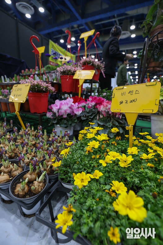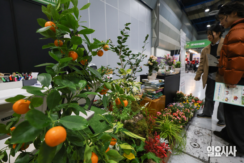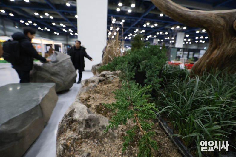30일 오전 서울 강남구 코엑스에서 열린 ‘2026 대한민국 조경·정원 박람회’를 찾은 관람객들이 전시된 조경수들을 살펴보고 있다.