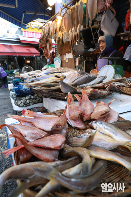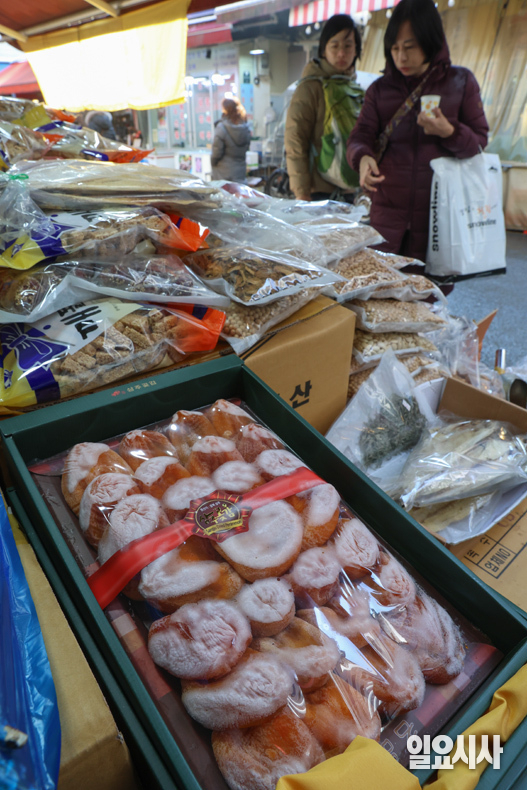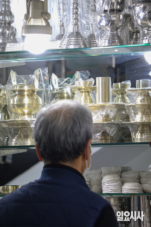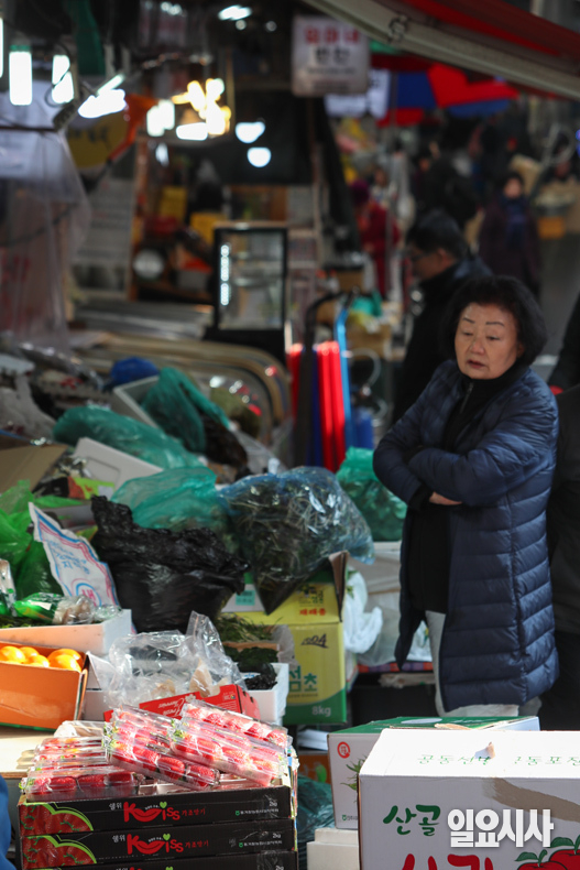 민족 대명절인 설이 다가온 가운데 2일 오전 서울 중구 남대문시장 상인이 전시된 제수용품을 살펴보고 있다.