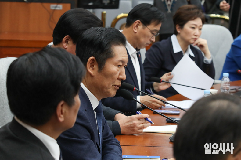 더불어민주당 정청래 대표가 6일 오후 서울 여의도 국회에서 열린 3선 의원 간담회에서 발언하고 있다.