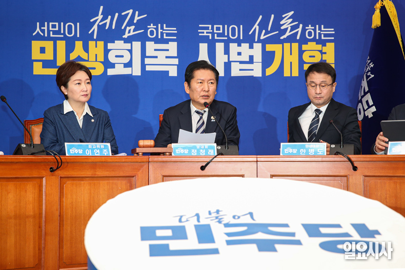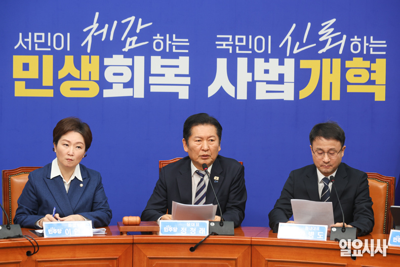 이날 정 대표는 민주당 주도의 사법개혁 3법 처리에 우려를 나타낸 조희대 대법원장과 관련해서 “사법개혁 3법에 대해 그동안 얼마나 많은 국민이 염원했고, 국민에게 얼마나 많은 지지를 받고 있는지 모르는가”라며 “조 대법원장은 사법부 수장으로서 무능하고, 무지할 뿐만 아니라 국민 정서에도 반하고, 번지수도 잘못 잡고 있다. 조 대법원장에게 다시 정중히 권한다. 거취를 표명하길 바란다”고 비판했다.