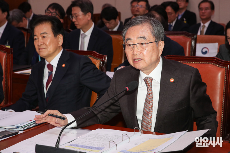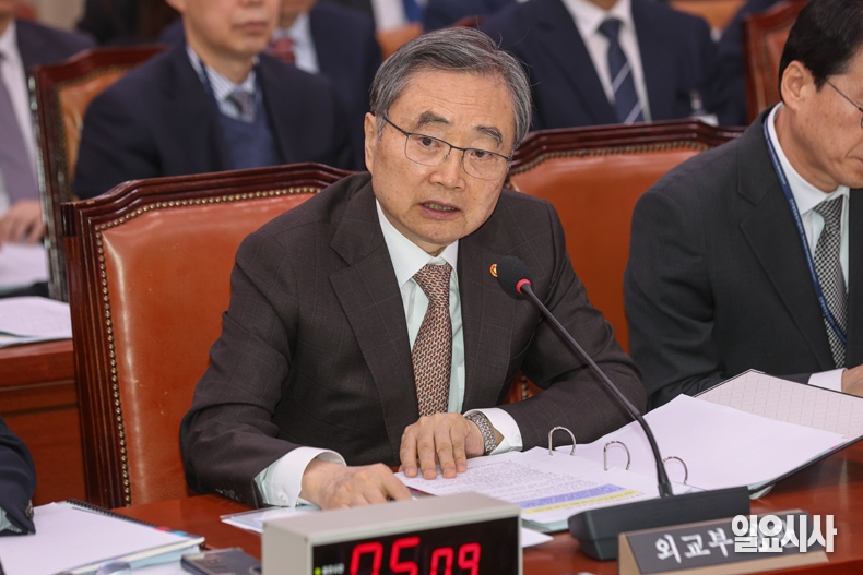 조현 외교부 장관이 6일 오전 서울 여의도 국회에서 열린 외교통일위원회 전체회의에서 의원 질의에 답하고 있다.