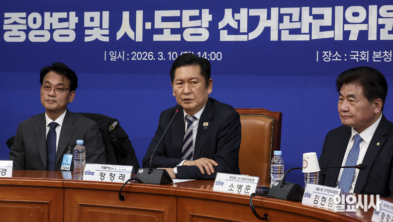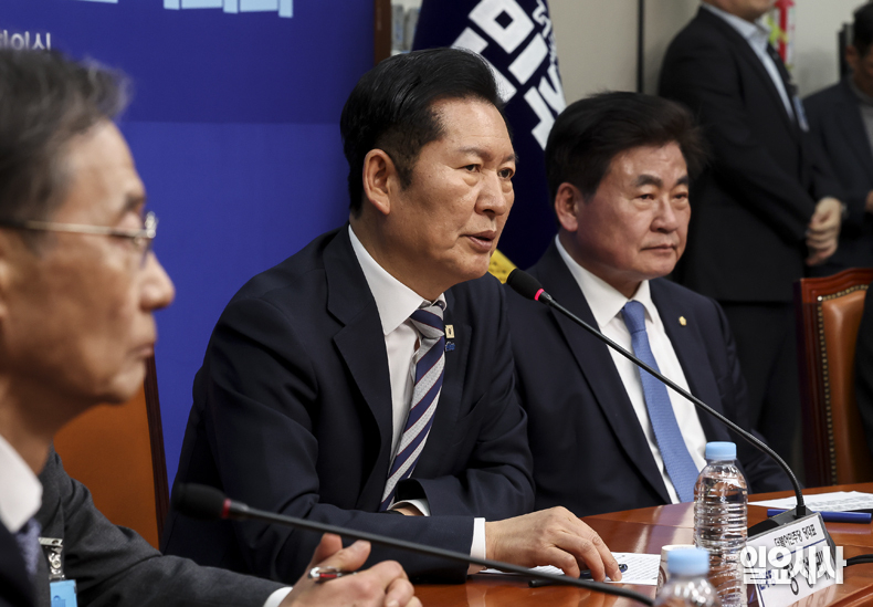 더불어민주당 정청래 대표가 10일 오후 서울 여의도 국회에서 열린 '중앙당 및 시·도당 선거관리위원장 연석회의'에서 모두발언을 하고 있다.