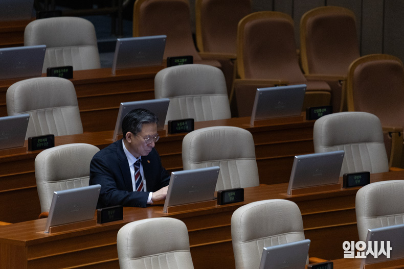 국민의힘 윤상현 의원이 19일 오후 서울 여의도 국회에서 열린 본회의에서 ‘공소청 설치법’이 상정된 후 필리버스터(무제한 토론을 통한 합법적 의사진행 방해)를 시작하자 더불어민주당 의원들이 자리를 떠나고 있다.