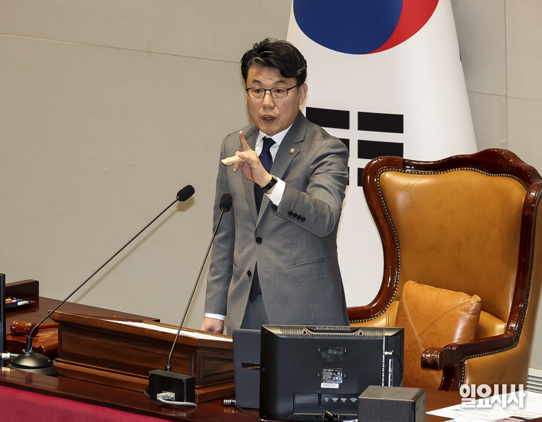 진성준 예산결산위원회(예결위) 위원장이 8일 서울 여의도 국회에서 열린 예결위 전체회의에서 발언하고 있다.