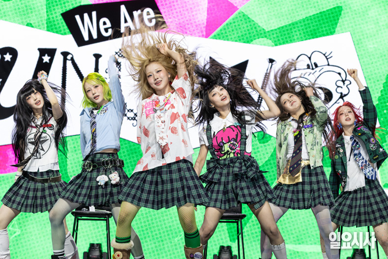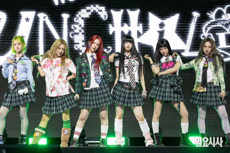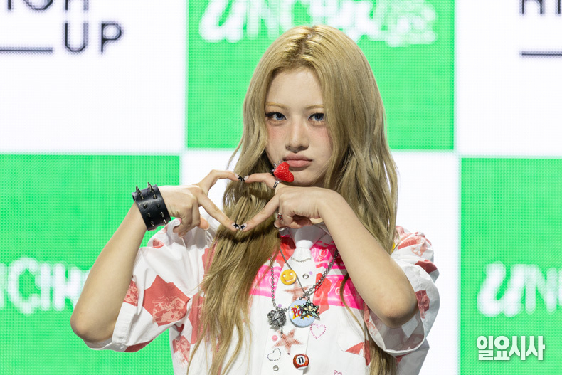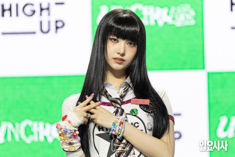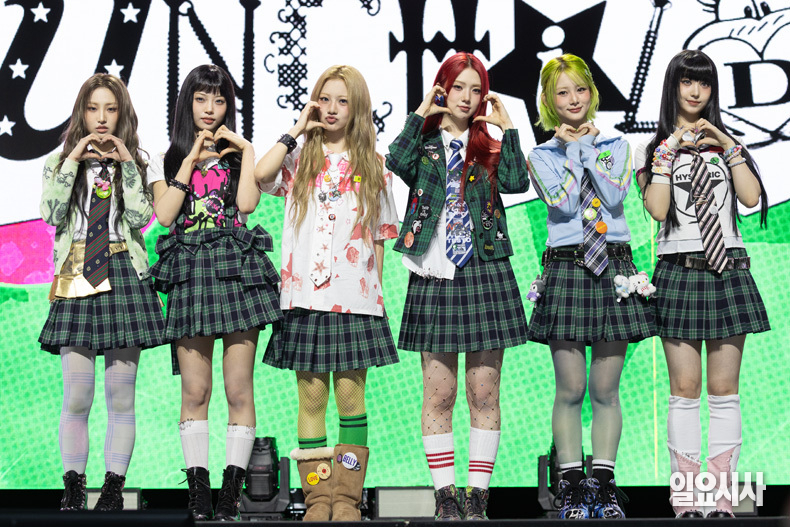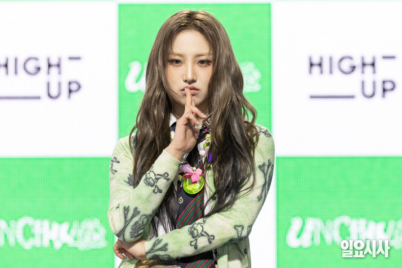 그룹 언차일드의 멤버 히키(왼쪽부터), 티나, 나하은, 박예은, 아코, 이본이 21일 오후 서울 용산구 블루스퀘어 우리won뱅킹홀에서 열린 ‘언차일드 데뷔 쇼케이스’에서 포토타임을 갖고 있다.