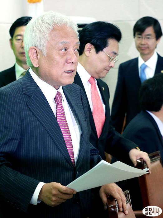 22일 오전 민주당 최고위원회의가 열린 서울 영등포구 중앙당사 회의실에서 김한길 대표가 착석을 준비하고 있다.