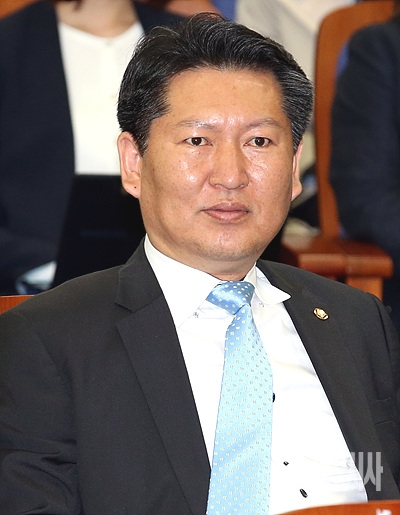 15일 오전, 정청래 의원이 서울 여의도 국회에서 열린 의원총회에 참석해 있다.