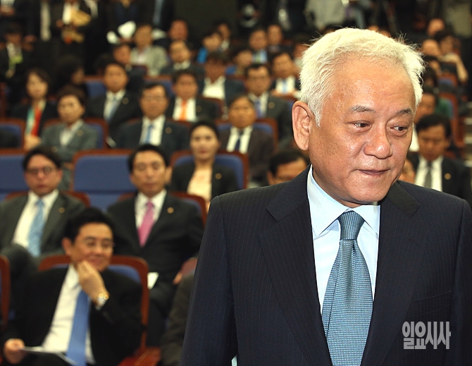 김한길 새정치민주연합 공동대표가 15일, 서울 여의도 국회에서 열린 의원총회에 참석 도중 잠시 고민하고 있다.