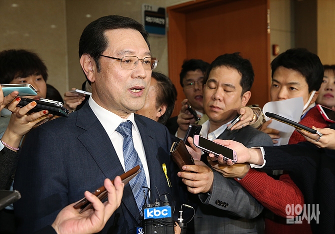 광주광역시장 전략공천 논란으로 최근 새정치민주연합을 탈당한 이용섭 의원이 7일 오전, 서울 여의도 정론관에서 광주시장 출마 관련 기자회견 직후 취재진의 질문에 답변하고 있다.