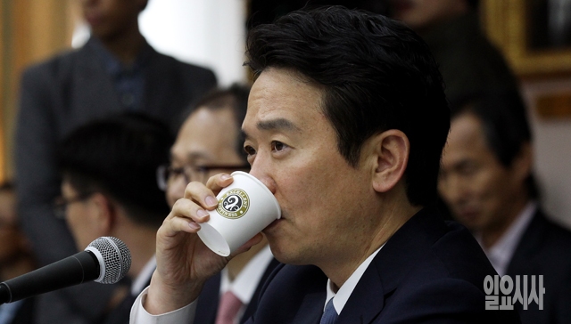 남경필 경기도지사가 22일 경기도 수원 경기도청에서 열린 국회 안전행정위원회의 국정감사에서 물을 마시고 있다.
