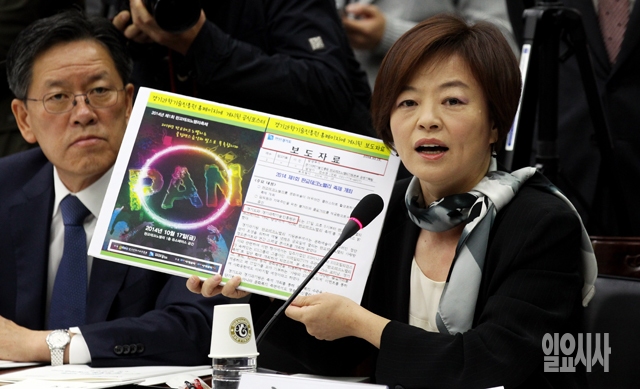 새정치민주연합 진선미 의원이 22일 경기도 수원 경기도청에서 열린 국회 안전행정위원회의 국정감사에서 남경필 도지사에게 질의를 하고 있다.