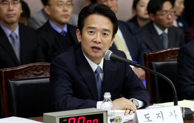 남경필 경기도지사가 22일 경기도 수원 경기도청에서 열린 국회 안전행정위원회의 국정감사에서 의원들의 질의에 답하고 있다.