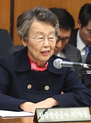 22일 오후, 서울 여의도 미래창조과학방송통신위원회 회의실에서 열린 KBS 등에 대한 국정감사에서 이인호 KBS 이사장이 증인으로 출석해 의원들의 질의에 답변하고 있다.