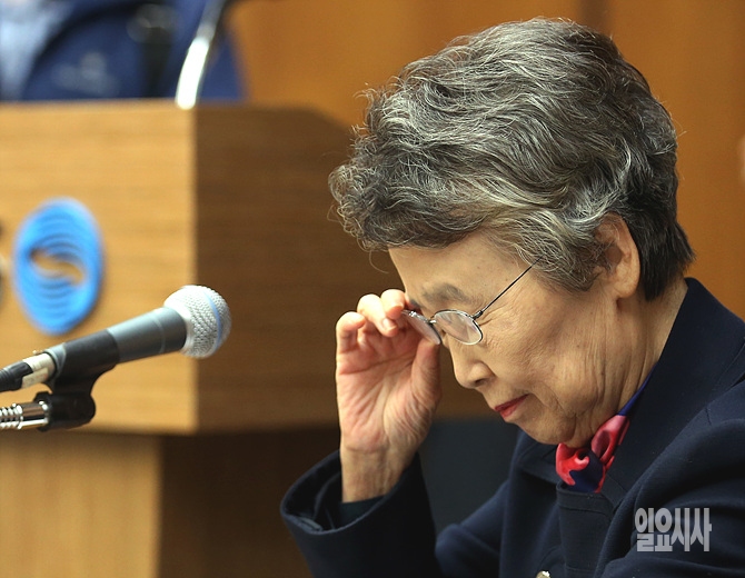 22일 오후, 서울 여의도 미래창조과학방송통신위원회 회의실에서 열린 KBS 등에 대한 국정감사에서 이인호 KBS 이사장이 증인으로 출석한 자리에서 의원들의 질의를 들으며 잠시 고민하고 있다.