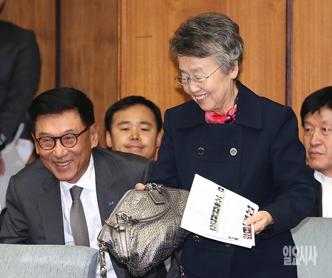 22일 오후, 서울 여의도 미래창조과학방송통신위원회 회의실에서 열린 KBS 등에 대한 국정감사 직전, 이인호 KBS 이사장이 증인으로 출석해 활짝 웃음 짓고 있다.