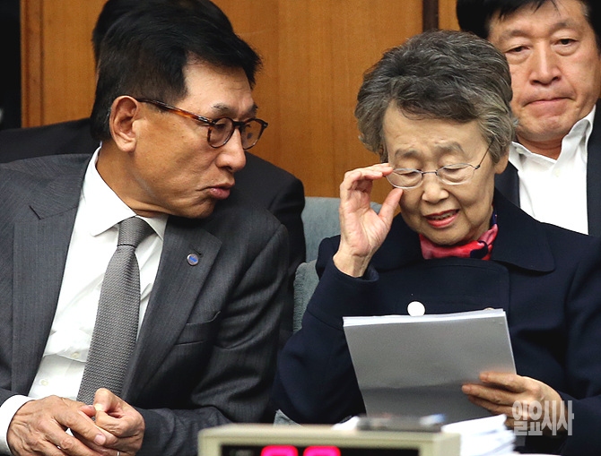 22일 오후, 서울 여의도 미래창조과학방송통신위원회 회의실에서 열린 KBS 등에 대한 국정감사에서 증인으로 출석한 이인호 KBS 이사장이 답변자료를 살피고 있다.