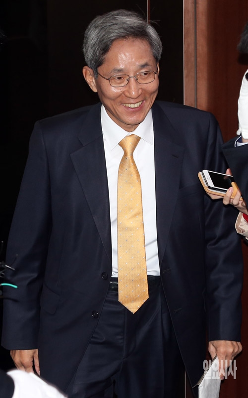KB금융지주 4대 회장으로 윤종규 전 KB금융 부사장이 22일 최종 선출됐다. 이날 KB금융지주 회장후보추천위원회는 서울 중구 명동 KB금융지주 본점에서 심층면접을 실시한 뒤 윤 전 부사장을 차기 회장 최종후보로 내정했다. 사진은 이날 면접 보러 들어서는 윤종규 전 KB금융 부사장.