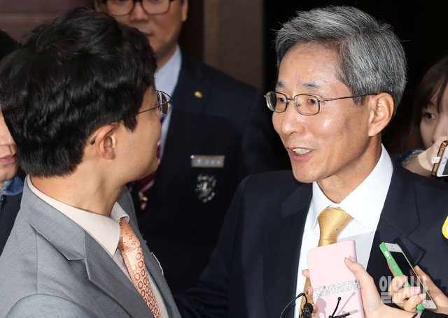 KB금융지주 4대 회장으로 윤종규 전 KB금융 부사장이 22일 최종 선출됐다. 이날 KB금융지주 회장후보추천위원회는 서울 중구 명동 KB금융지주 본점에서 심층면접을 실시한 뒤 윤 전 부사장을 차기 회장 최종후보로 내정했다. 사진은 이날 면접 보러 들어서는 윤종규 전 KB금융 부사장.