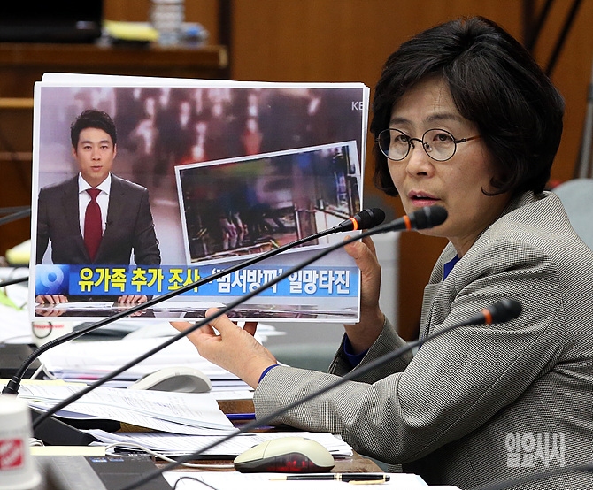 22일 오후, 서울 여의도 미래창조과학방송통신위원회 회의실에서 열린 KBS 등에 대한 국정감사에서 유승희 새정치민주연합 의원이 질의하고 있다.