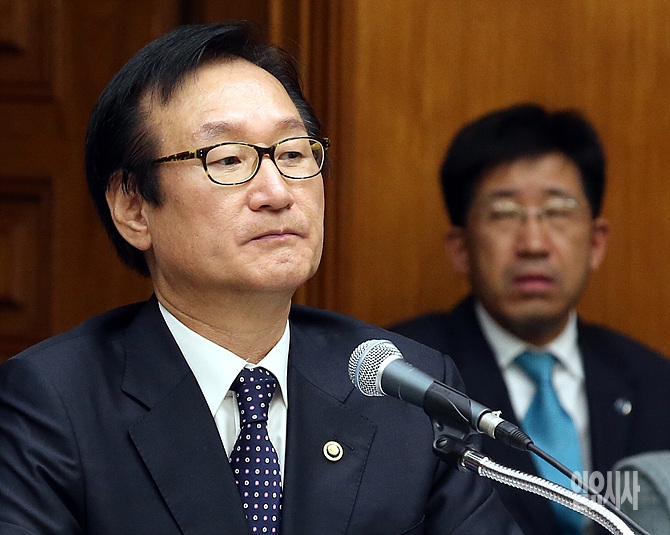 22일 오후, 서울 여의도 미래창조과학방송통신위원회 회의실에서 열린 KBS 등에 대한 국정감사에서 이날 증인으로 출석한 방송통신위원회 허원제 부위원장(18대 새누리당 의원)이 의원들의 질의를 듣고 있다.