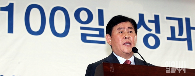최경환 경제부총리 겸 기획재정부 장관이 30일 서울 여의도 국회 의원회관에서 열린 '최경환 경제팀 100일, 성과와 과제' 토론회에서 축사를 하고 있다.