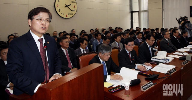 최양희 미래창조과학부 장관이 30일 서울 여의도 국회에서 열린 미래창조과학방송위원회 전체회의에서 업무보고를 하고 있다.