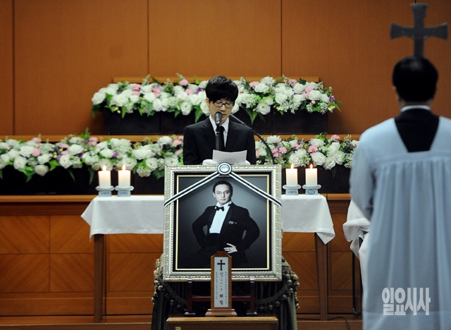 31일 서울 풍납동 서울아산병원에서 故 신해철의 영결식이 열리고 있는 가운데 가수 서태지가 추도사를 하고 있다. (사진공동취재단)