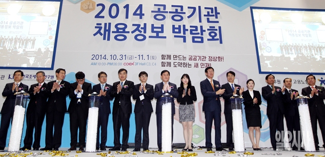 최경환 부총리겸 기획재정부 장관이 31일 서울 삼성동 코엑스에서 열린 2014 공공기관 채용정보 박람회 개회식에서 개막 선언을 하고 있다.