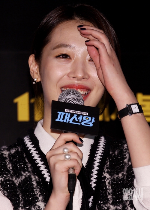 가수 겸 배우 설리가 31일 서울 CGV 왕십리점에서 열린 영화 '패션왕'(감독 오기환) 언론시사회에서 취재진의 질문에 답하고 있다.