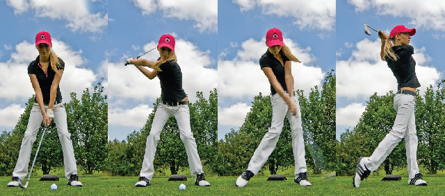 대부분의 골퍼는 다운스윙이 시작되면서 오른발이 일찍 떨어지며 돌아가는 실수를 많이 한다.