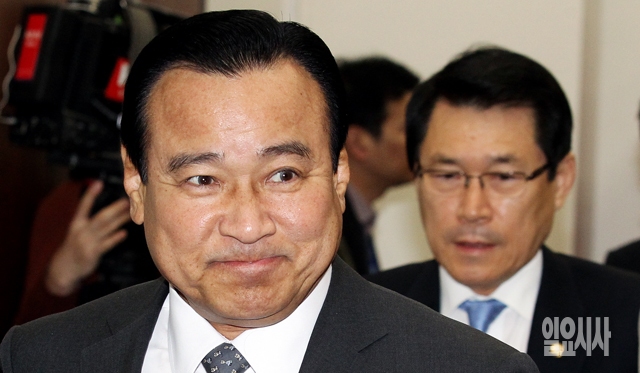 새누리당 이완구 원내대표와 이군현 사무총장이 3일 서울 여의도 국회에서 열린 최고위원회의에 참석하고 있다.