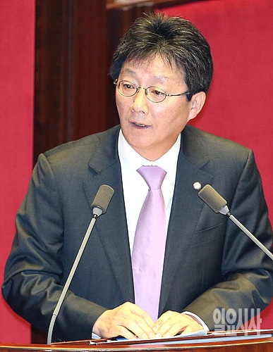 3일, 서울 여의도 국회 본회의장에서 열린 국회 대정부질문 도중 새누리당 유승민 의원이 외교·통일·안보에 관한 대정부 질문에서 한민구 국방부 장관에게 사드(THAAD, 고고도미사일방어체계)의 방어와 관련해 질의를 하고 있다.