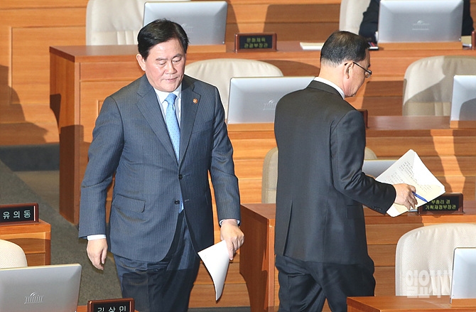 4일, 서울 여의도 국회 본회의장에서 열린 경제분야 대정부질문에서 최경환 경제부총리 겸 기획재정부장관이 의원들의 질의를 받기 위해 단상으로 향하고 있다.