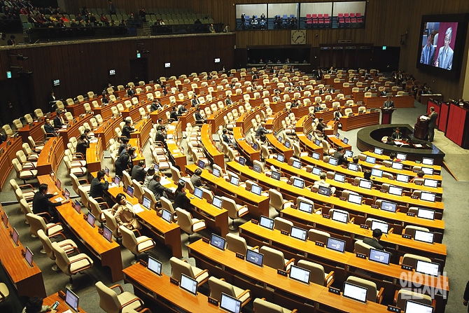 4일, 서울 여의도 국회 본회의장에서 열린 경제분야 대정부질문에서 새누리당 여상규 의원이 최경환 경제부총리 겸 기획재정부장관에게 질의하고 있다.