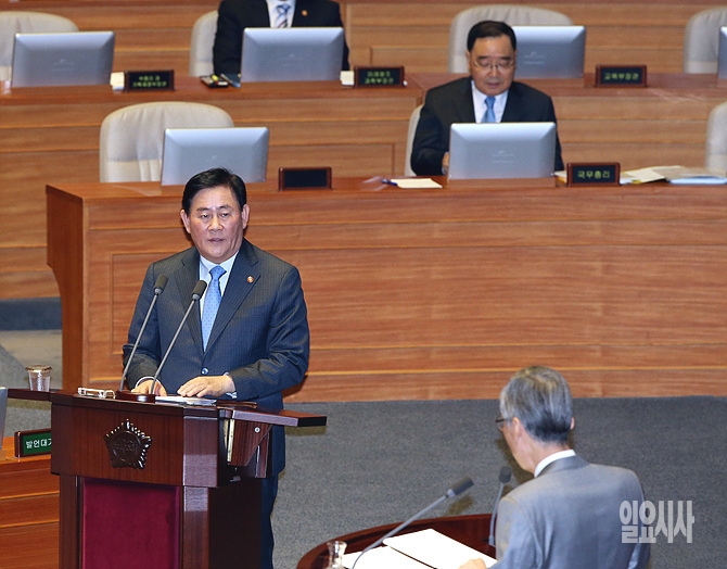 4일, 서울 여의도 국회 본회의장에서 열린 경제분야 대정부질문에서 최경환 경제부총리 겸 기획재정부장관이 새누리당 여상규 의원의 질의를 듣고 있다.